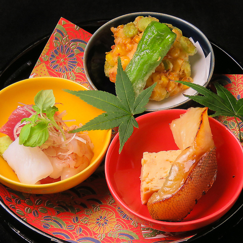 徳島の豊かな四季を映し出す当店では、コース料理の枠にとらわれず、お客様のその日の感性で愉しんでいただける「単品注文(アラカルト)」を承っております。。自分だけの献立を組み立てる、割烹ならではの醍醐味をお楽しみください。