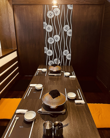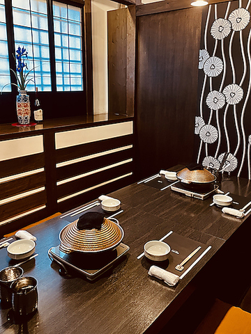 店内は落ち着いた雰囲気で接待にも最適。全室掘りごたつでゆっくりとおいしい鍋を囲もう。