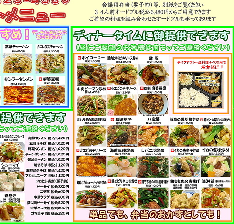 おかずに000円で弁当に出来ます。小ライス・サラダ・ザーサイ・小料理付きです。中ライスにするに+100円。容器上パンパンになり申し訳ございません。