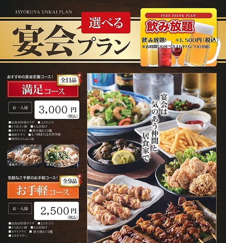 全3種の宴会をご用意しております。鶏屋らしさ満点のコースで乾杯!