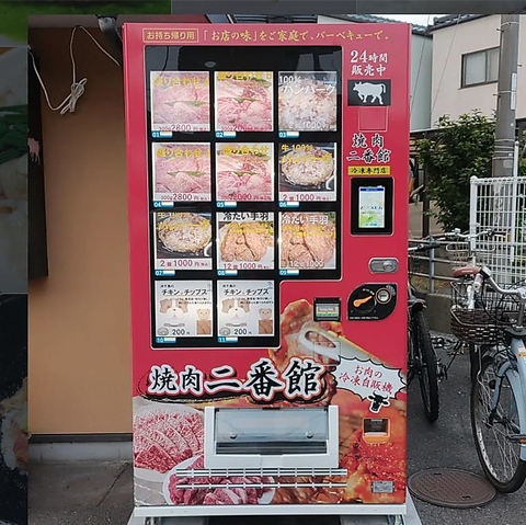 お店の味をご家庭、バーベキューで。自動販売機をご用意しております。