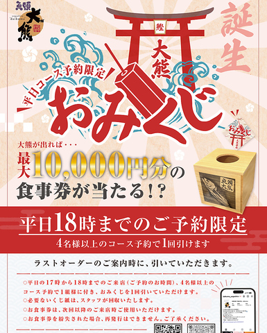 おみくじで次回使える最大1万円分のお食事券が当たる!?※要平日17~18時迄来店予約(4名様以上・コース)