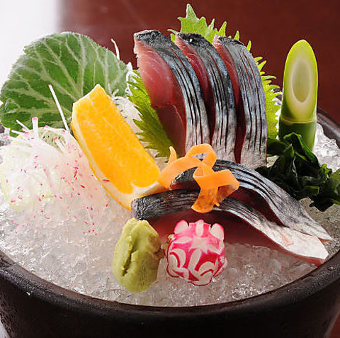 土佐清水で獲れる新鮮な清水鯖を、なんとお造りでお楽しみいただけます!もちっとした歯ごたえが特徴的。