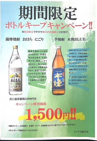 | 日本酒・焼酎 | 日本酒(いそのさわ)/焼酎(芋・麦・米) |