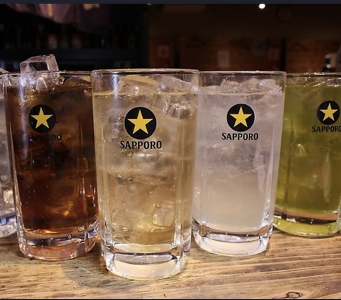 サワー系ハイボールを無料でメガサイズに変更できます。何杯でもOK!金土日祝日前日祝日は除きます。