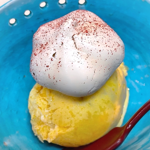 女将が手作りするコース料理食後の和菓子。オリジナル感を出す為 趣向を凝らします。また、時期の果物や野菜で作るアイスや不定期に作るサービス菓子も好評頂いております。