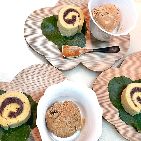 会席料理の締めのデザートは全て女将の手作り。その時々に合わせて作ります。画像は紅茶アイス、プチロール