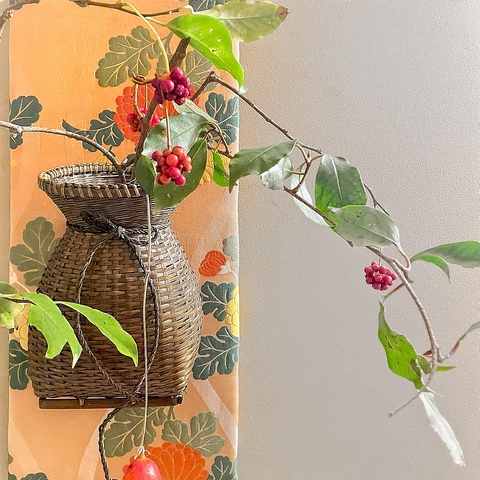 お化粧室にも花は欠かせません。今週はサネカズラの実を下げて。