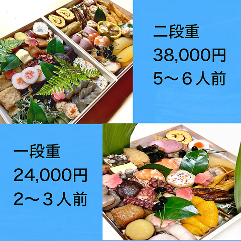 全て完全手作りで多くのリピーターのお客様に御好評頂いております、はぎ原 のお節2段重 28種入り。仕切り無し、器無しの納得の品数と出来立ての美味しさを。31日にお受け渡したさせて頂いております。