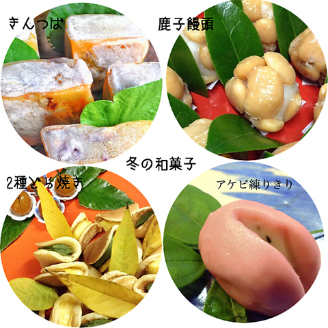 お持たせに御注文頂く女将の求肥餅は季節で中の餡が旬の風味に変わります。秋からは栗やさつま芋、南瓜など御好評頂いています。全て手作りの為 事前の御予約を承っております。