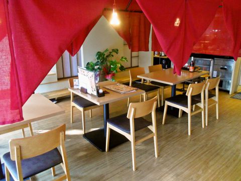 【洗練された雰囲気】店内の天井から下がっている赤い布が独特な雰囲気。居心地が良く寛ぎながらお食事をお楽しみ頂けます。大人数での宴会も承っておりますので、ご相談ください♪