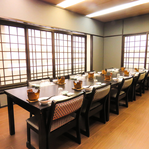 旅館の様な趣の完全個室をご用意。お席はお座敷の上にゆったり座れるイス、テーブルを置いております。掘りごたつ席よりも負荷なくお座り頂けるお席です。3F/4F/5Fと趣ある和の完全個室をご用意。八雲亭ならではの空間をご堪能下さい