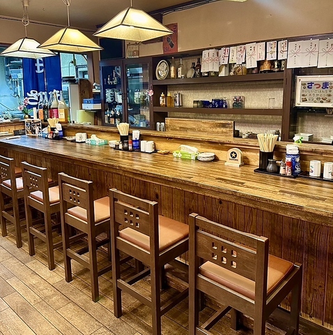 店内は木目を基調とした和モダンな造りで、落ち着いた雰囲気が心地よい空間を演出。テーブル席とカウンター席があり、お一人様からデート、ご家族でのお食事、宴会まで幅広いシーンに対応しています。ゆったりとした時間の中で、美味しい料理をお楽しみください。