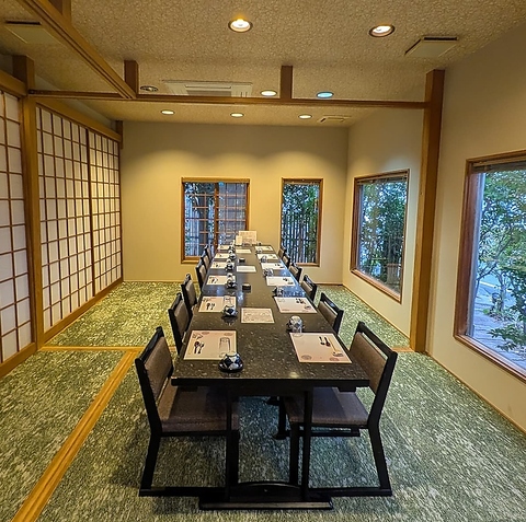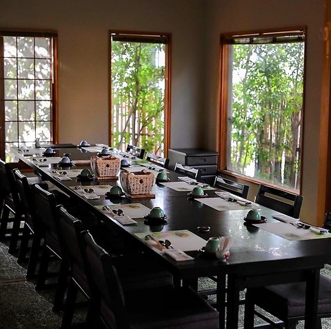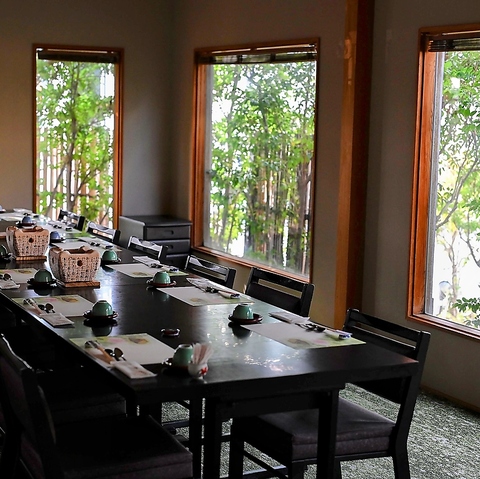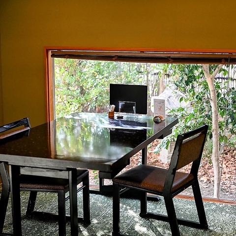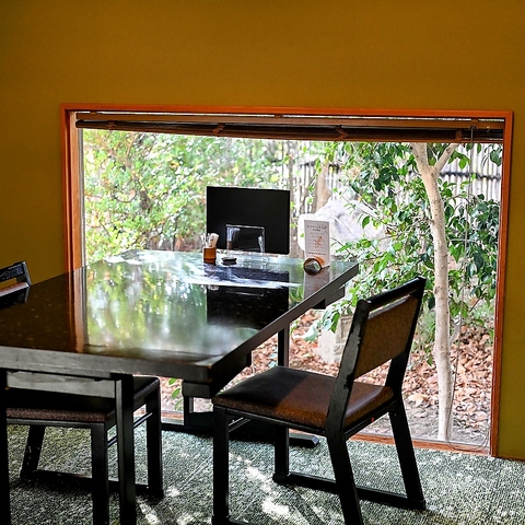 | テーブル | 4名様×8 | 落ち着いた空間で緑を眺めながらお食事を楽しめるお席をご準備しています。 |