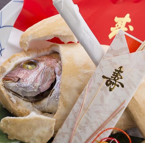 還暦や餅踏み、結婚式の顔合わせなどの慶事・お祝いに『塩釜付きお祝い会席』6600円~