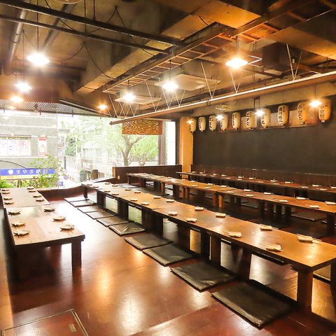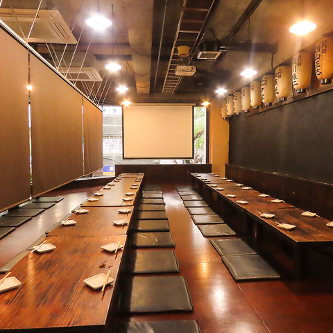 【最大宴会はなんと100名様までOK】の広々とした空間で学生宴会はもちろん、会社宴会や決起集会にも最適です◎貸切利用も可能ですのでお気軽にご相談ください。またパーテーションでお部屋を区切ることも可能ですので、安心してご利用いただけます。
