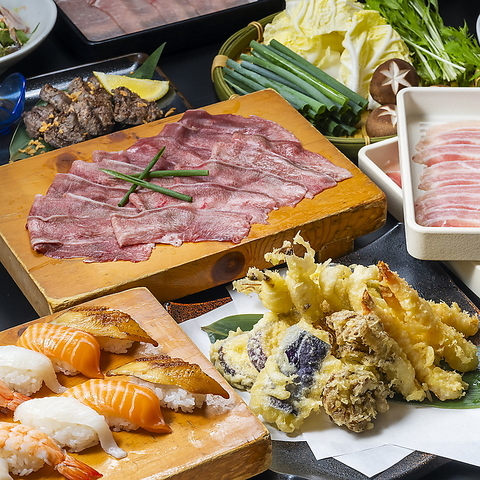 ご予算、食べたい料理にあわせて選べるコースは3種類。豚しゃぶ・寿司・一品料理など、すべて食べ放題。素材にこだわり、食べれば納得の厳選素材。人気のたんしゃぶや天ぷらは桜コースから。豪華★蟹は椿コースで食べ放題!ごゆっくりご堪能下さい♪