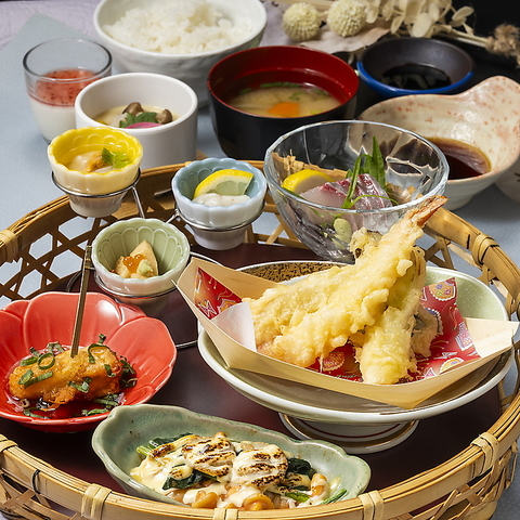 大分の味を愉しめる豊後郷土料理御膳。ご家族やご友人との集まりにもオススメです。●りゅうきゅう、とり天、しいたけ天、季節の子盛り蕎麦、鶏めし、茶碗蒸し、一口甘味●