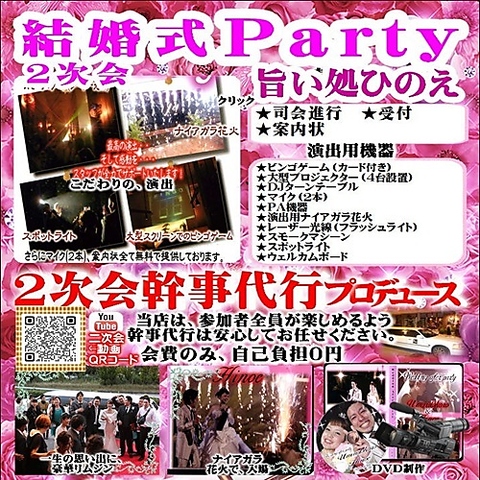 結婚式2次会代行プラン有り!詳しくはコースにて。 |