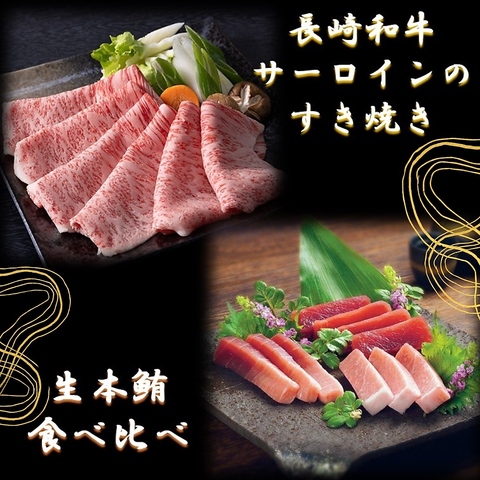 板長厳JA長崎和牛サーロインや特上生本まぐろ食べ比べを盛り込んだ豪華逸品コースをでご用意いたしました。