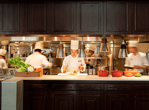 洗礼された空間の中央に位置するオープンキッチン。シェフが創り出す料理の数々は、主役で有り、会話に華を添える脇役でもあります。そんな料理をテンポ良く提供できるようにオープンキッチンから最高の状態でお料理を仕上げて行きます。