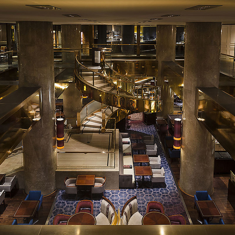 マーブルラウンジは、542平米、吹き抜けの開放感あふれるラウンジはダークブラウンを基調にモダンカラーの様々なタイプのインテリアが配され、心地よい音楽が流れるリラックススペースです。