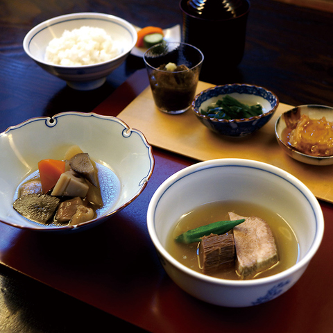 季節の副菜を彩り豊かに盛り付け、炊き立ての白飯と共に、季節のお野菜や出汁巻きなど少しづつの味を色々と楽しめる和食店ならではのランチ御膳です。 メインのおかずは各地の特産肉をじっくり煮込んだ「豚の柔らか煮」となります。~内容~季節の彩々八寸/本日の御肉料理/炊き立て白飯/香物 汁物