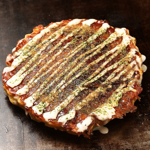 大阪のお好み焼の定番。生地と具材とキャベツのおいしいハーモニー。