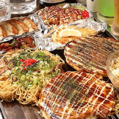食べ放題はお好み焼き・焼きそばの他、鉄板焼や一品料理なども!当店の人気メニューをぜひご堪能ください!