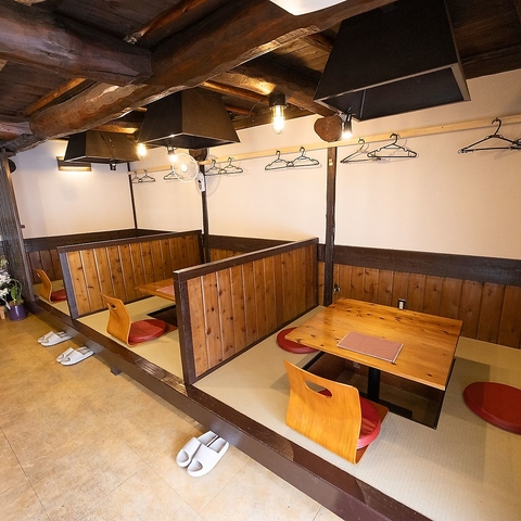 近鉄南大阪線土師ノ里駅出口より徒歩約10分と駅チカです!仕事帰りのサク飲みや会社仲間との集まりにもおすすめです◎半個室風の掘りごたつ席もご用意しています。老舗店舗の和を基調としたどこか懐かしく、落ち着いた雰囲気でお過ごし頂ける空間をお楽しみください。