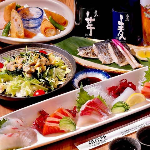 刺身盛り合せはもちろん、職人の織り成す魚介のみにとどまらない自慢の創作料理の数々をコースで!!☆金土祝前日は2時間飲み放題!☆日~木限定で無制限飲み放題となります!※GWやお盆期間、年末年始などの繁忙期では2時間となる場合あり