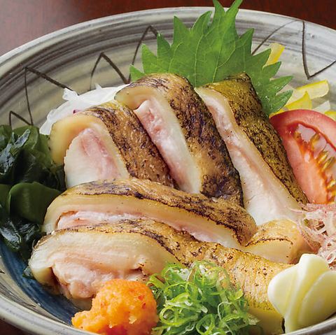 強火で炙って風味を引き出し、塩をたたいて味を馴染ませる。南国土佐ならではの野趣溢れる郷土料理です。当店では伝統の一本釣りで釣り上げられた新鮮な鰹を使用。創業以来から培ってきた秘伝の焼き方で、脂の乗った皮目をパリッと仕上げました。ゆずポン酢でお召し上がりください。