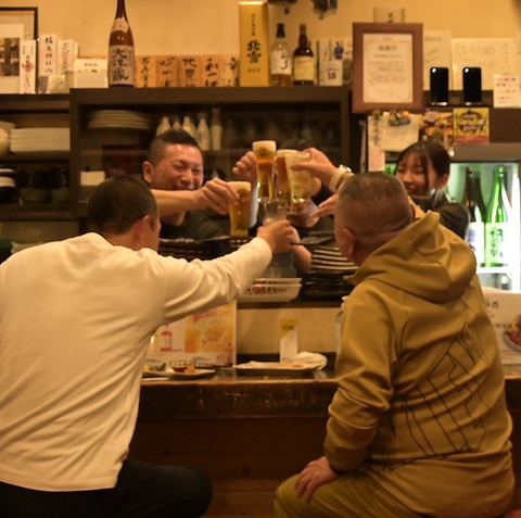 【1階カウンター席】ゆったり広めで足を伸ばせる特等席。会社帰りの一杯や、急な飲み会にも是非ご利用ください!