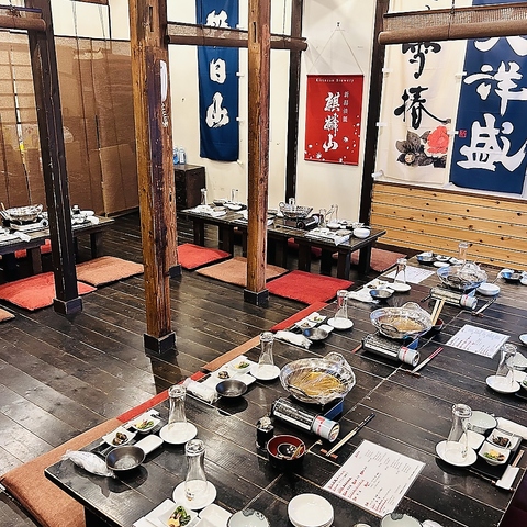 【1階テーブル席】少人数の飲み会にピッタリな御座敷席です。落ち着いた店内でゆったりと新潟の味をご堪能下さい。