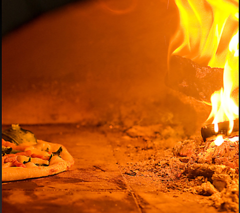 薪の炎で焼き上げる石窯ピザ。香り、食感、味わいすべてが格別。