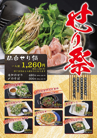 旬のせりを使った名物せり鍋をはじめ、多彩なせり料理を期間限定でご用意しております