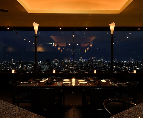 近距離夜景に包まれながら展望レストランを貸切り利用。