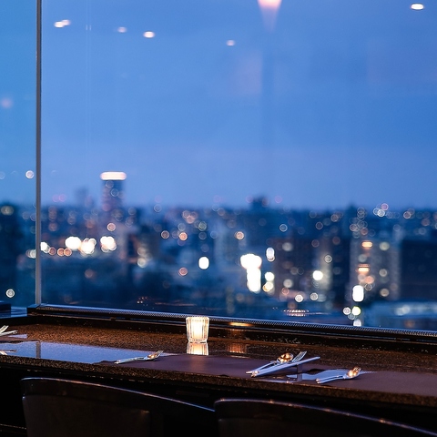 全席から夜景をご覧いただけますが、最前列のカウンター席がマスト。利用時間2時間となりますが席料は頂戴いたしません。ご予約優先となります。利用時間の関係上18時、20時が比較的ご案内しやすい傾向です。