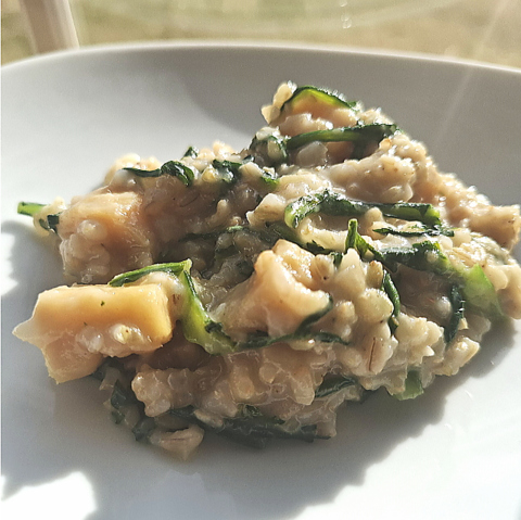 バターとチーズで作った濃厚なリゾットに菊菜の爽やかな香りを
