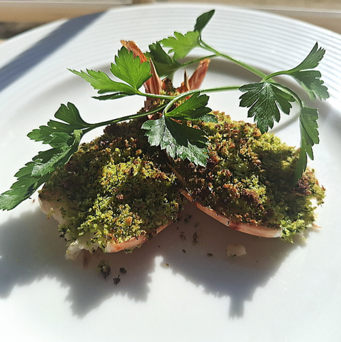 にんにくを効かした香草パン粉付け焼き。香ばしい。