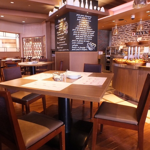 当店自慢の焼きたてのパンを店内パンコーナーに随時並べていて、お客様が自由にお取りいただけます。テーブルのレイアウト変更も可能です。
