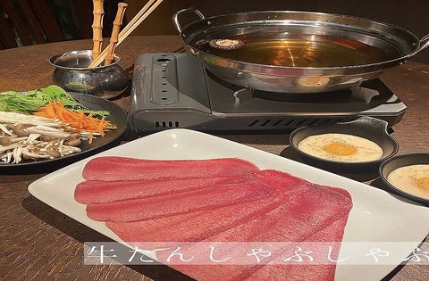 当店名物の牛タンしゃぶしゃぶは、レアでも食べられる新鮮さが自慢!上品な昆布ときのこの出汁にさっとくぐらせ、特製の月見とろろをたっぷりつけてお召し上がりください!焼くのとは違う、とろけるような柔らかさと濃厚な旨みが楽しめます。牛タン好きにはたまらない逸品です♪