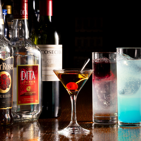 【飲み放題付きコースがおすすめ♪】インザバレルの人気料理が堪能できる飲み放題付きコースをご用意しております。飲み放題はなんど80種類以上のドリンクが飲み放題に♪カクテルがたくさん楽しめるのも嬉しいポイント◎生ビールやスコッチ、グラスワインも飲み放題です!!
