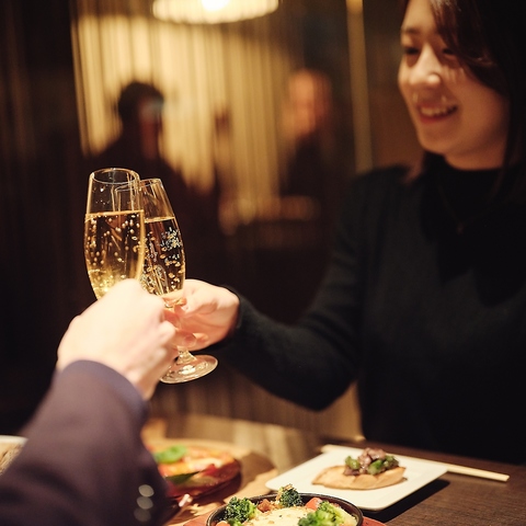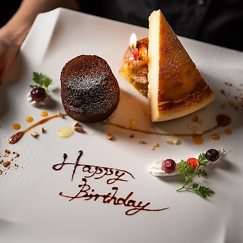 お誕生日、ふたりの記念日、ご結婚、ご出産…さまざまなお祝いサプライズに対応いたします。歓送迎会など主役のいらっしゃるお集まりにも。コースご利用のお客様は、コースデザートをお誕生日仕様にすることも可能です。+1500円でサプライズ仕様のデザート盛合せも承ります。