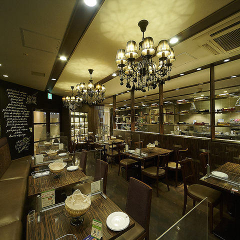 大きな窓から降り注ぐあたたかい光で優しく照らされた広々とした店内。開放的空間で大切な方との素敵な時間をお過ごしください。店内奥にはお1人様でも気軽に楽しめるカウンター席もございます。