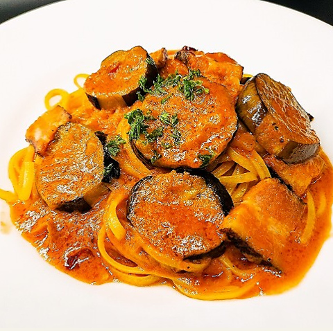 アマトリチャーナ風 茄子のピリ辛トマトクリーム