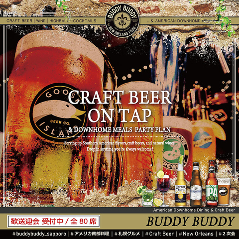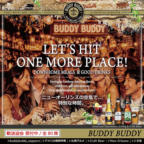 | 店名 | 【札幌駅/歓送迎会/宴会最大80名】アメリカ料理とクラフトビール バディバディ |