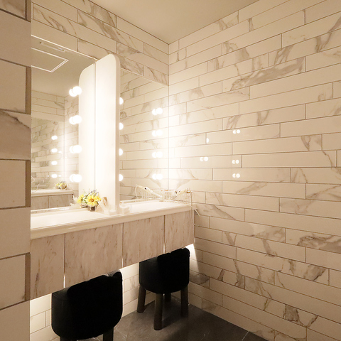 | テーブル | 1名様×3 | トイレには自慢のパウダールーム☆アイロンも完備しているので、お色直しもバッチリです♪ |
