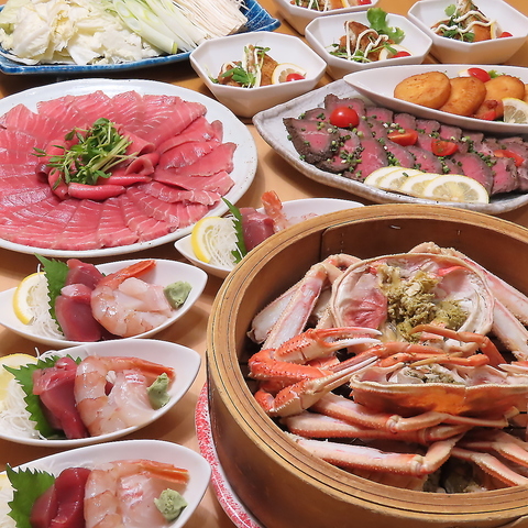 きんき鍋と蟹のせいろが付いた豪華コースです!※写真のキンキ鍋と蟹のせいろは4人盛り。それ以外は各種盛りでご提供いたします。