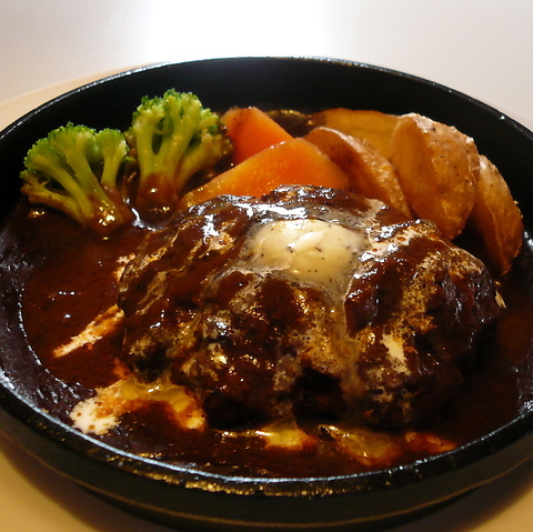 那須和牛100%で作った一番人気のハンバーグセット。仕込みの後一日寝かせてから手ごねした牛肉はしっとりしておいしい。
